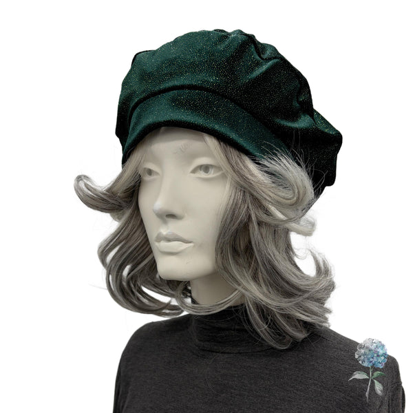 Emerald Green Sparkle Beret with Satin Lining - Size Medium/Large