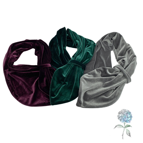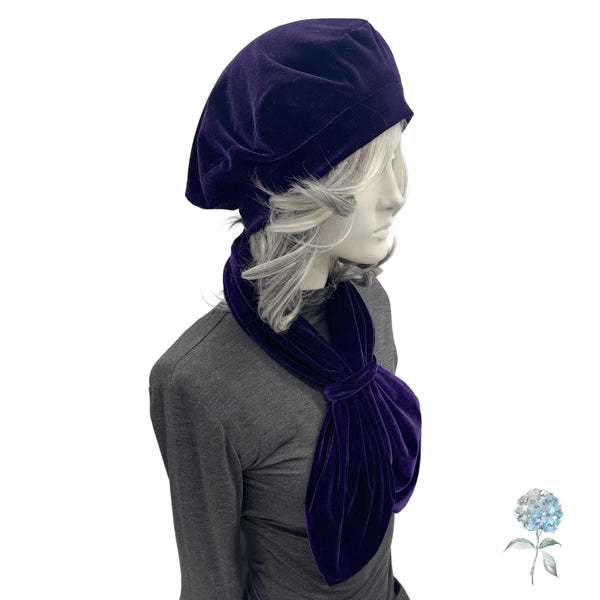 This beret and pull through scarf are crafted with love in the USA, and boast a soft, stretchy velvet material that's perfect for chilly days and glamorous nights.