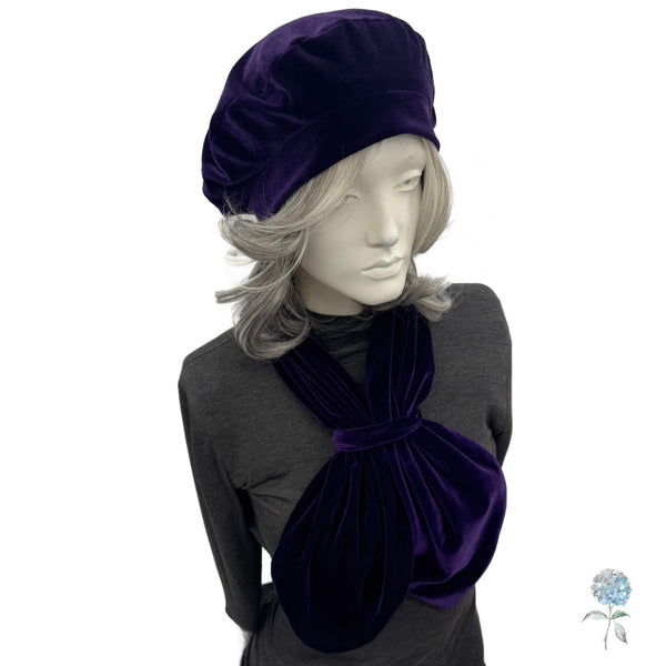 Indulge in a touch of luxury with our handmade velvet beret and scarf set. SIZE M-L