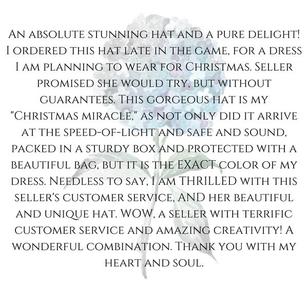 Your lovely beret arrives in its own satin hat bag and is shipped via USPS. Your package is insured throughout transit.