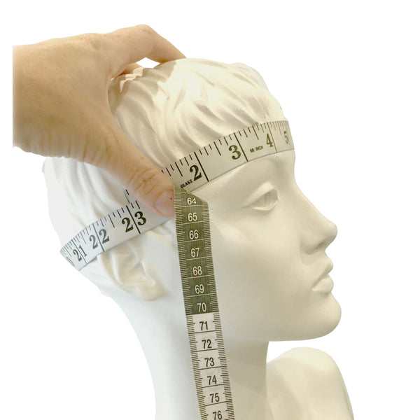 Take a measuring tape and wrap it around your head just above your eyebrows and over your ears. Make sure the tape lies over the fullest part of the back of the head and do not pull the tape any tighter than you would want a hat to feel during wear.