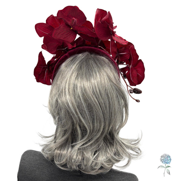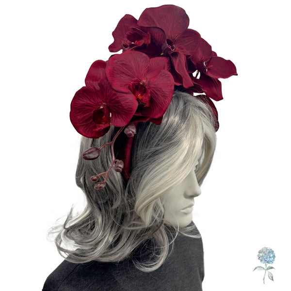 Burgundy Orchid Fascinator Headband – Statement Floral Headpiece | Handmade in the USA