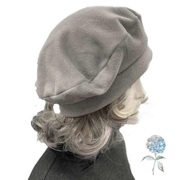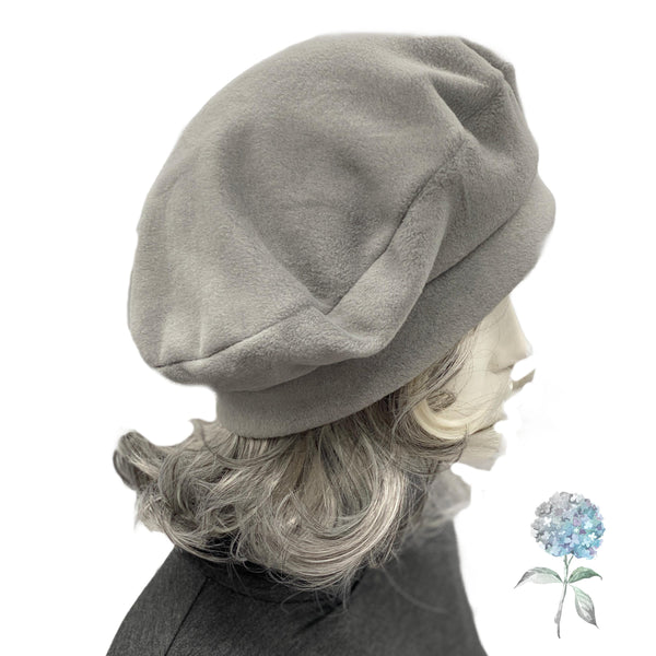 This gorgeous Beret hat handmade in soft luxury gray fleece and lined in satin. Fleece has showerproof qualities so should keep your hair dry!
