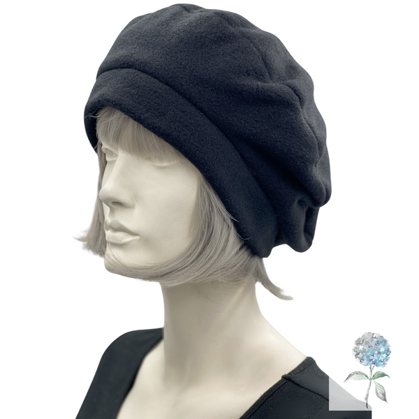 Handmade Fleece Beret : Satin Lined Winter Hat for Women with Removable Bow