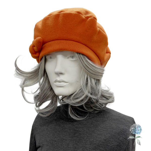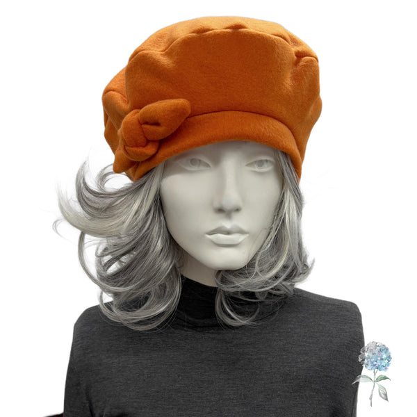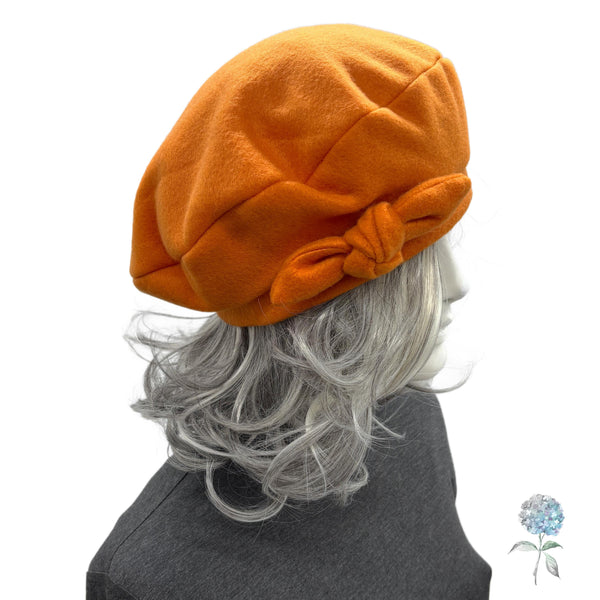 Burnt Orange Fleece Beret with Removable Bow — Handmade in the USA