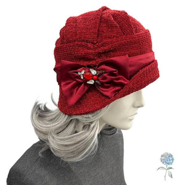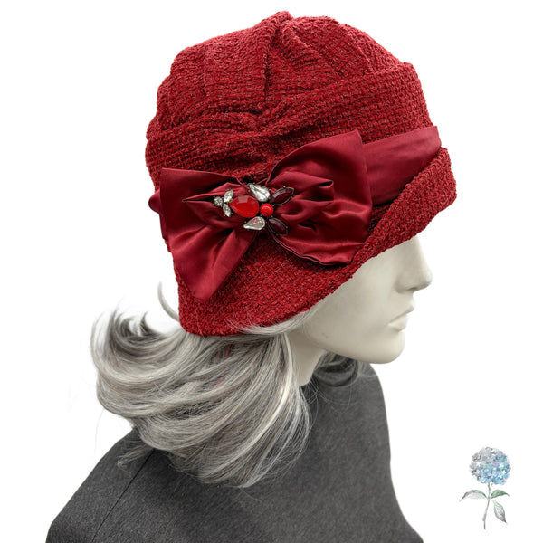 Red Bouclé Cloche Hat with Satin Lining | The Alice
