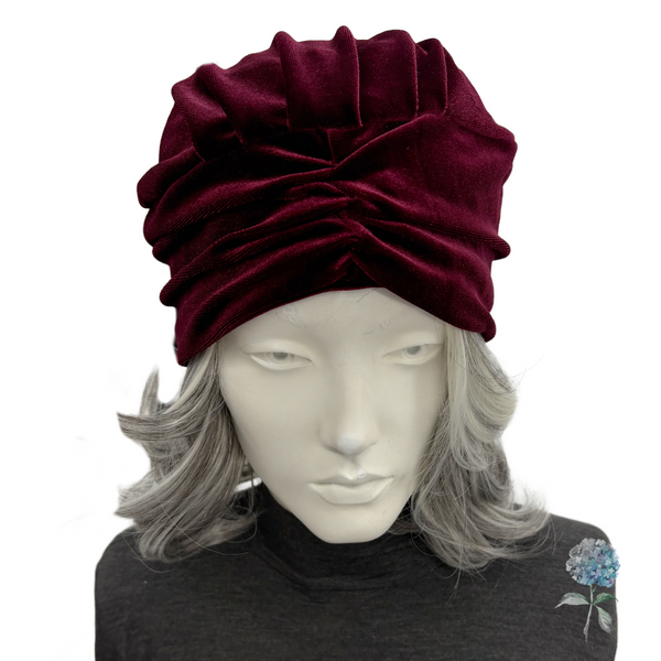 Luxuriously soft and effortlessly elegant, this handmade velvet turban hat is designed to offer both comfort and timeless style. Crafted from plush stretch velvet, it provides a gentle, secure fit with full head coverage—making it as practical as it is beautiful.