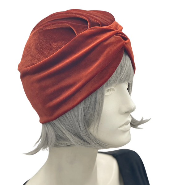 The softly gathered front creates a flattering turban silhouette that adds instant polish, whether worn casually or dressed up for an evening out. The velvet’s subtle sheen catches the light beautifully, giving this hat a rich, sophisticated look across all color options.
