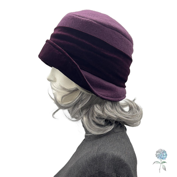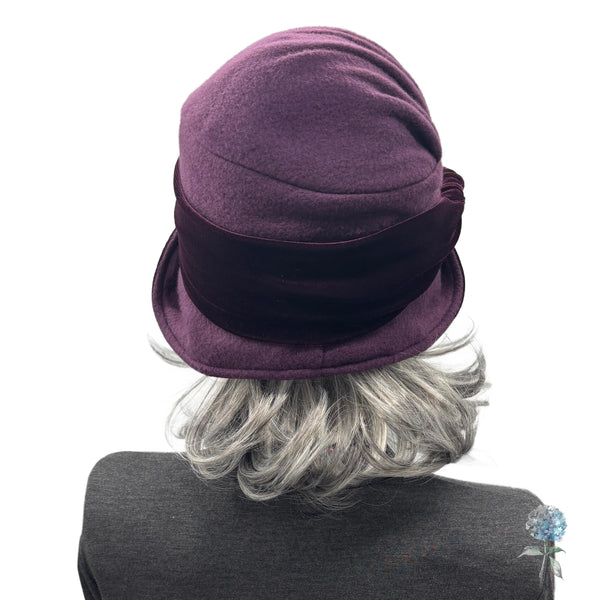 Eggplant Fleece and Velvet Cloche Hat for Women โ Satin Lined | Handmade | Elegant Fall, Winter and Spring Hat | Chemo Hat | Vintage-Inspired